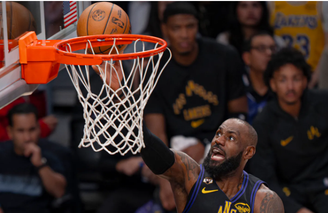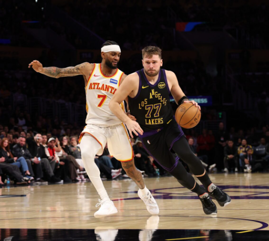 On Tuesday night, the Los Angeles Lakers (24-14) showcased their prowess from the opening tip, delivering a basketball masterclass as they overwhelmed the Atlanta Hawks (20-22) with a commanding 141-116 victory. Veteran forward LeBron James turned back the clock, leading the Lakers’ offensive onslaught with a near triple-double, amassing 31 points, 10 assists, and 9 rebounds on an efficient 12-20 shooting, including 2-4 from beyond the arc. All-star guard Luka Doncic had a quieter night by his standards, contributing 27 points. While Doncic found his rhythm from long range, hitting 5-9 from downtown, he faced challenges inside the arc, converting just 7 of his 16 attempts.